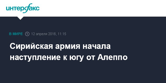Москва. 12 апреля. INTERFAX.RU - Сирийские правительственные войска начали наступательную операцию против боевиков южнее Алеппо, сообщает во вторник агентство Associated Press.