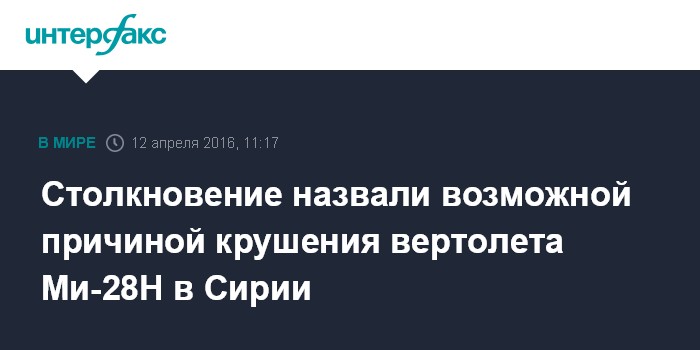 Москва. 12 апреля. INTERFAX.RU - Причиной катастрофы вертолета Ми-28Н в Сирии могли стать неблагоприятные условия полета, сообщили "Интерфаксу" в оборонно-промышленном комплексе во вторник.