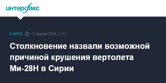 Столкновение назвали возможной причиной крушения вертолета Ми-28Н в Сирии