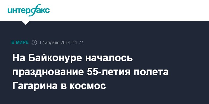 Москва. 12 апреля. INTERFAX.RU - Праздничные мероприятия, посвященные Дню космонавтики и 55-летию полета первого человека в космос, начались во вторник в городе Байконур (Кызылординская область Казахстана).