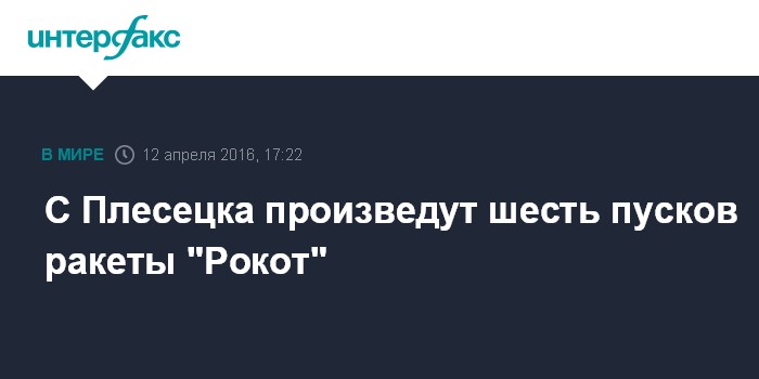 Москва. 12 апреля. INTERFAX.RU - С космодрома Плесецк запланированы шесть пусков ракеты "Рокот", из них три - в интересах иностранного заказчика, заявил "Интерфаксу-АВН" начальник космодрома Плесецк, генерал-майор Николай Нестечук.
