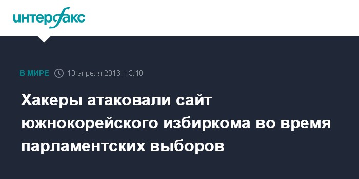 Москва. 13 апреля. INTERFAX.RU - Хакеры атаковали сайт южнокорейской Национальной избирательной комиссии во время проведения в среду парламентских выборов, передает агентство EFE.