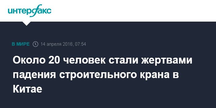 Москва. 14 апреля. INTERFAX.RU - Не менее 18 человек, по предварительным данным, погибли в южном Китае в результате падения строительного крана, еще 18 человек госпитализированы с травмами, сообщили местные СМИ в четверг.