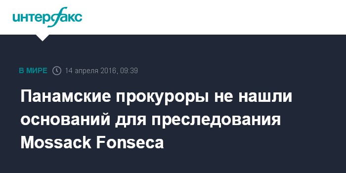 Москва. 14 апреля. INTERFAX.RU - Прокуратура Панамы по результатам обыска в офисе юридической фирмы Mossack Fonseca пока не обнаружила оснований для судебного разбирательства, сообщают в четверг западные СМИ.