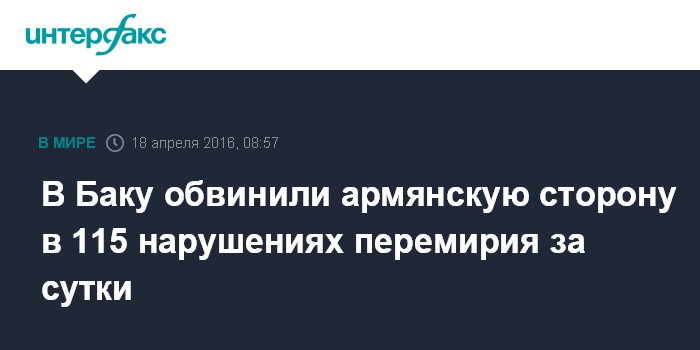 В Баку обвинили армянскую сторону в 115 нарушениях перемирия за сутки