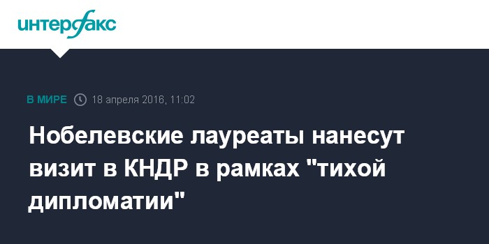 Москва. 18 апреля. INTERFAX.RU - Трое нобелевских лауреатов намерены посетить Северную Корею, сообщают в понедельник западные СМИ.