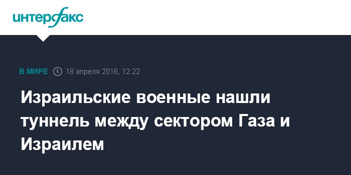 Москва. 18 апреля. INTERFAX.RU - Служащие армии обороны Израиля обнаружили на большой глубине потайной туннель, соединяющий сектор Газа и Израиль, сообщает в понедельник израильская газета The Jerusalem Post.