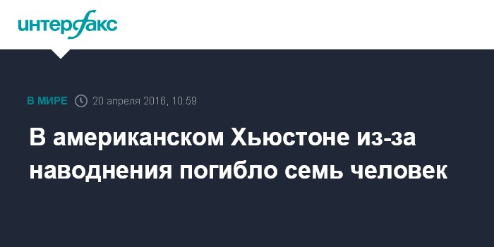 Москва. 20 апреля. INTERFAX.RU - В американском городе Хьюстон (штат Техас) из-за наводнения погибло семь человек, город и прилегающие к нему районы объявлены зоной стихийного бедствия, сообщило в среду агентство AP.