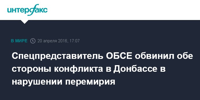 Москва. 20 апреля. INTERFAX.RU - Режим прекращения огня в Донбассе нарушают обе противоборствующие стороны, заявил спецпредставитель ОБСЕ Мартин Сайдик журналистам в Минске в среду.