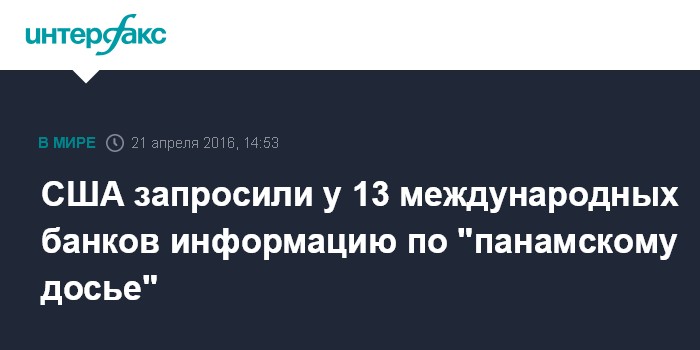Москва. 21 апреля. INTERFAX.RU - Органы финансового надзора в штате Нью-Йорк начали расследование скандала об отмывании денег через панамские офшоры вслед за прокуратурой Нью-Йорка и затребовали информацию у 13 международных финансовых институтов, пишет The New York Post.