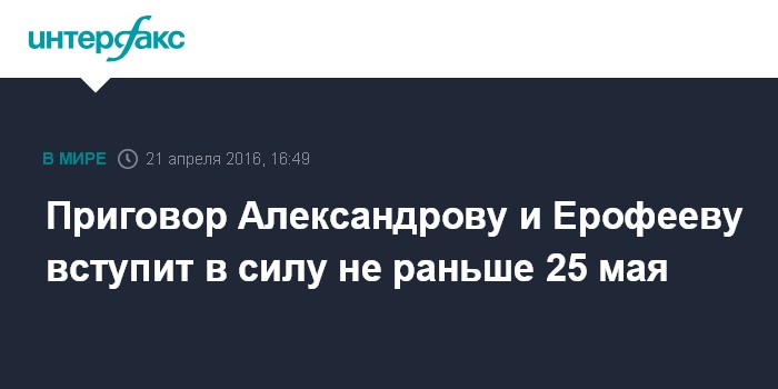 Приговор Александрову и Ерофееву вступит в силу не раньше 25 мая