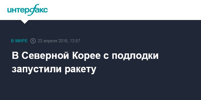Москва. 23 апреля. INTERFAX.RU - КНДР провела испытания ракеты с подводной лодки, сообщает в субботу южнокорейский телеканал JTBC.
