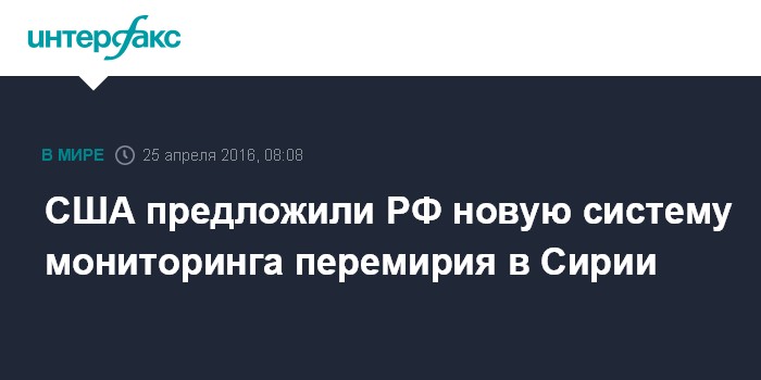 Москва. 25 апреля. INTERFAX.RU - США предлагают России организовать в Сирии новую круглосуточную систему наблюдения за соблюдением режима прекращения боевых действий, сообщил госсекретарь США Джон Керри, слова которого приводит газета New York Times