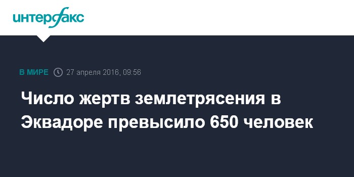 Москва. 27 апреля. INTERFAX.RU - До 659 возросло число погибших в результате мощного землетрясения в Эквадоре, сообщили в среду власти страны.