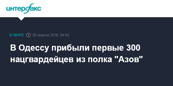 Москва. 28 апреля. INTERFAX.RU - Глава Одесской области Украины Михаил Саакашвили сообщил о прибытии в Одессу трехсот бойцов Национальной гвардии из подразделения специального назначения "Азов".