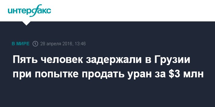 Ранее в апреле в Тбилиси были задержаны шесть человек при попытке реализации радиоактивного вещества уран-238, среди них были трое граждан Армении.