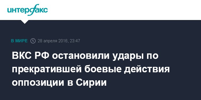Москва. 28 апреля. INTERFAX.RU - Российские ВКС не наносили удары по оппозиции, заявившей о прекращении боевых действий в Сирии.