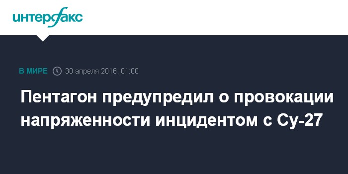 Пентагон предупредил о провокации напряженности инцидентом с Су-27