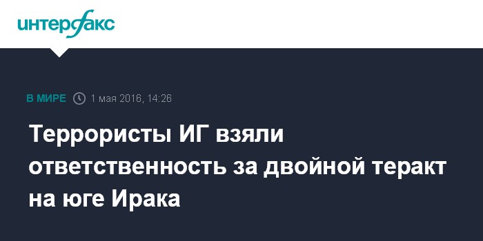 Москва. 1 мая. INTERFAX.RU - Боевики из террористической группировки "Исламское государство" (ИГ, запрещена в РФ) взяли на себя ответственность за двойной теракт на юге Ирака, пишет в воскресенье газета The Independent.
