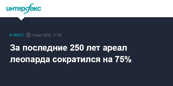 За последние 250 лет ареал леопарда сократился на 75%