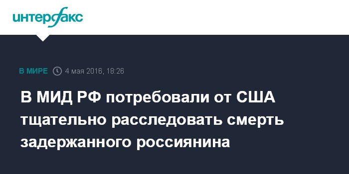 В МИД РФ потребовали от США тщательно расследовать смерть задержанного россиянина
