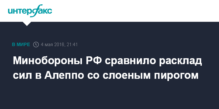 Минобороны РФ сравнило расклад сил в Алеппо со слоеным пирогом