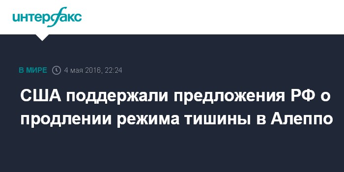 В госдепартаменте США ранее в среду подтвердили достижение с РФ соглашения по распространению перемирия между сторонами конфликта в Сирии на провинцию Алеппо. "В рамках наших усилий по деэскалации насилия в Сирии и установления по всей территории этой страны перемирия США и Россия вчера в конце дня согласовали решение о распространении режима прекращения огня на провинцию Алеппо, в том числе - на одноименный город и на прилегающие к нему районы", - отмечается в заявлении, опубликованном на сайте госдепа.