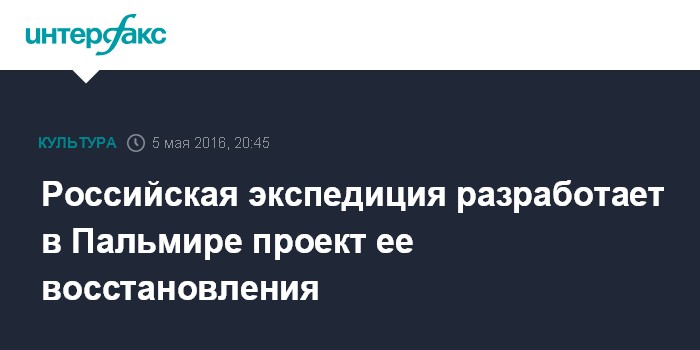 "Россия готова направить в Пальмиру специальную экспедицию, состоящую из археологов, ученых, музейщиков, возможно, реставраторов, которая предпримет первые экстренные шаги, а самое главное - разработает проект восстановления Пальмиры, разработает план, что делать в первую очередь, во вторую, как и какими силами", - сказал он на брифинге в Пальмире.