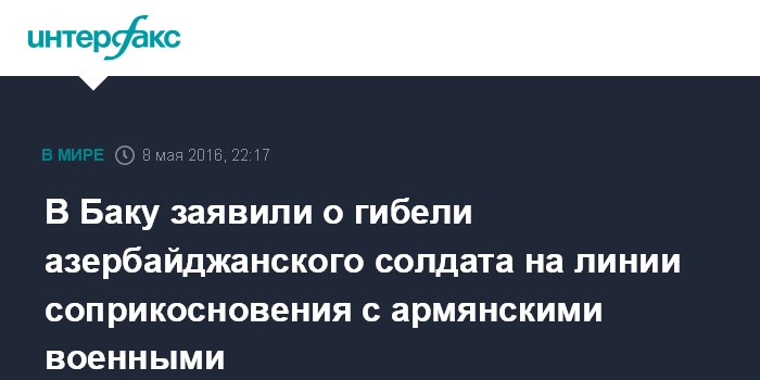 В Баку заявили о гибели азербайджанского солдата на линии соприкосновения с армянскими военными