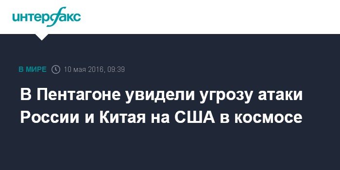 Москва. 10 мая. INTERFAX.RU - В Пентагоне полагают, что Россия и Китай разрабатывают технологии, которые позволят этим странам напасть на США в космосе, сообщает во вторник The Washington Post со ссылкой на представителей ведомства.