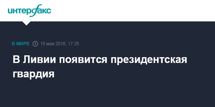 Москва. 10 мая. INTERFAX.RU - Поддерживаемое ООН ливийское правительство национального единства во вторник объявило о создании нового военного подразделения - президентской гвардии, говорится в сообщении, распространенном во вторник на странице правительства в Фейсбуке.