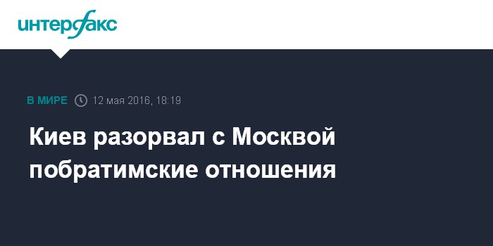 "В соответствии с решением Киевского городского совета от 11 февраля 2016 года... сообщаем о том, что в связи с военной агрессией РФ против Украины, аннексией АР Крым и оккупацией части территорий Донецкой и Луганской областей город Киев разрывает в одностороннем порядке все ранее подписанные договора про побратимство, партнерство и сотрудничество с городом Москва", - говорится в письме Прокопива в адрес правительства Москвы, копию которого он обнародовал в фейсбуке в четверг.