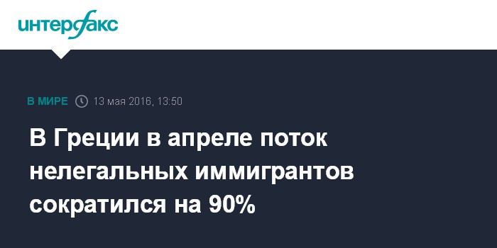 Москва. 13 мая. INTERFAX.RU - Количество мигрантов, прибывающих на греческие острова, сократилось в апреле на 90% в сравнении с мартом, сообщили в пятницу в пограничном агентстве ЕС Frontex.