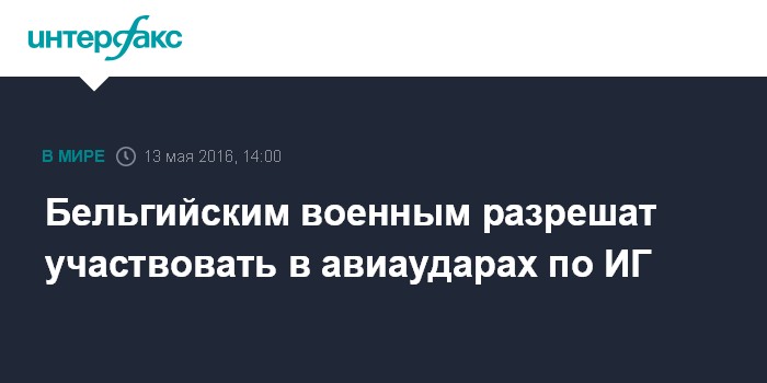 Москва. 13 мая. INTERFAX.RU - ВВС Бельгии получат возможность участвовать в операциях по нанесению ударов по террористам на территории Сирии, объявили в пятницу в бельгийском правительстве.