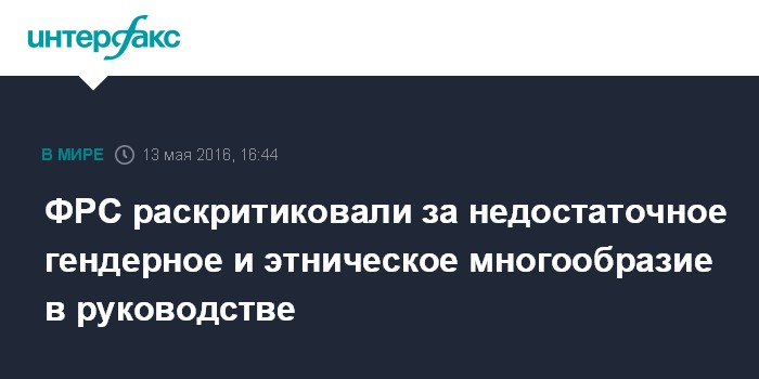 Между тем представитель ФРС Дэвид Скидмор огласил иные данные: так, представителями этнических меньшинств являются 24% руководителей Федрезерва (против 16% в 2010 году), а доля женщин составляет 30% (23% в 2010 году).