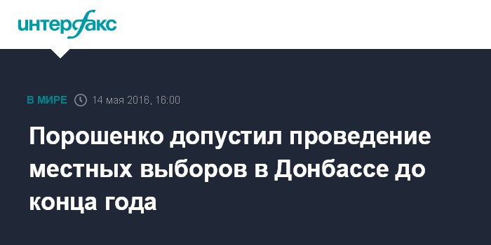 Москва. 14 мая. INTERFAX.RU - Президент Украины Петр Порошенко не исключает возможность проведения местных выборов в Донбассе в 2016 году при обеспечении необходимых условий.