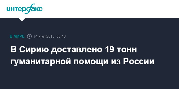 Москва. 14 мая. INTERFAX.RU - Военно-транспортные самолеты ВКС России доставили в Сирию 19 тонн гуманитарной помощи, сообщает Минобороны РФ.