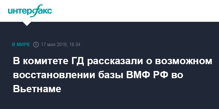 Москва. 17 мая. INTERFAX.RU - Восстановление военной базы в Камрани (Вьетнам) создаст для России некоторые преимущества, но этот вопрос нуждается в тщательной проработке, заявил "Интерфаксу" глава Комитета Госдумы по обороне, бывший командующий Черноморским флотом РФ адмирал Владимир Комоедов.