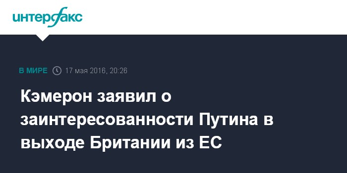 Кэмерон заявил о заинтересованности Путина в выходе Британии из ЕС
