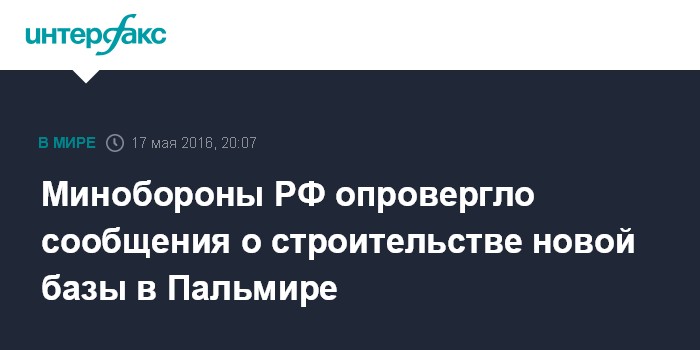Москва. 17 мая. INTERFAX.RU - В Минобороны РФ опровергли информацию о том, что около сирийской Пальмиры якобы строится новая российская база.