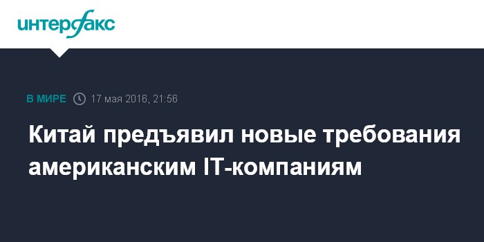 Москва. 17 мая. INTERFAX.RU - Власти Китая потребовали предоставлять ревью кода продуктов от технологических американских компаний, работающих на рынке КНР, сообщает The New York Times.
