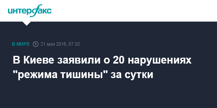 Москва. 21 мая. INTERFAX.RU - За прошедшие сутки ополченцы 20 раз применяли оружие против украинских военных в Донбассе, сообщает пресс-центр силовой операции в Facebook в субботу.