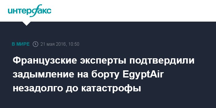 Москва. 21 мая. INTERFAX.RU - Эксперты французского Бюро расследований и анализа подтвердили в субботу, что на борту египетского лайнера незадолго до крушения в Средиземном море действительно было задымление.