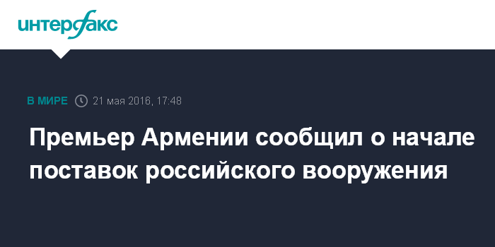 Москва. 21 мая. INTERFAX.RU - Процесс поставок российского вооружения Армении в рамках российского экспортного кредита в размере $200 млн начался, заявил премьер-министр Армении Овик Абраамян.