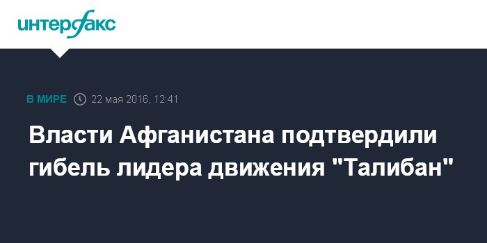 Москва. 22 мая. INTERFAX.RU - Главное управление национальной безопасности Афганистана (ГУНБ ИРА) в воскресенье подтвердило гибель лидера одной из крупнейшей фракции экстремистского движения "Талибан" муллы Ахтара Мухаммада Мансура.