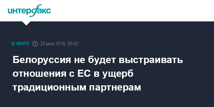 Москва. 23 мая. INTERFAX.RU - Белоруссия не намерена выстраивать отношения с Евросоюзом в ущерб отношениям с Россией и СНГ, заявил министр иностранных дел Белоруссии Владимир Макей в интервью телеканалу "ОНТ".