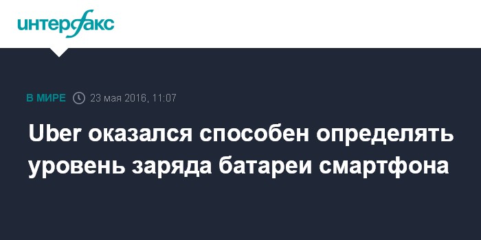 Москва. 23 мая. INTERFAX.RU - Приложение Uber для заказа такси оказалось способно определять уровень заряда аккумуляторной батареи смартфона пользователя и, тем самым, предусматривать вероятное согласие клиента заплатить большую цену за поездку, пишет британская газета The Independent.