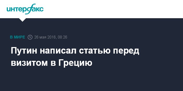 "Сегодня Греция - важный партнер России в Европе. Ведем динамичный политический диалог, в том числе на высшем уровне. (...) К сожалению, дальнейшему упрочению нашего сотрудничества мешает спад в отношениях России и Евросоюза", - пишет Путин в статье для греческой газеты "Катимерини" в преддверии своего визита в Грецию.