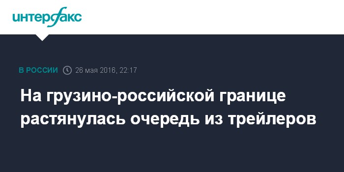 Москва. 26 мая. INTERFAX.RU - Перед таможенно-пропускным пунктом "Казбеги-Верхний Ларс" выстроилась очередь в несколько километров из грузовых машин, следующих из Грузии в направлении России, сообщают в четверг грузинские СМИ. По словам водителей, проблема в таможне на российской стороне, которая не может пропускать возросший транспортный поток, и им приходится днями простаивать в очереди.