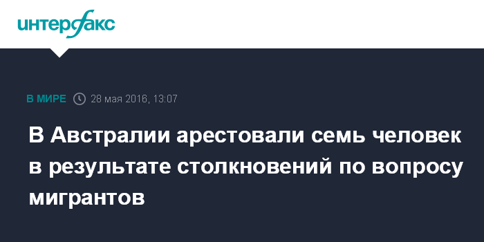 Москва. 28 мая. INTERFAX.RU - Полиция Австралии арестовала семь человек из-за беспорядков, которые возникли в районе Мельбурна Коберг во время двух демонстраций, связанных с проблемой иммигрантов, сообщает в субботу австралийская телерадиокомпания ABC.